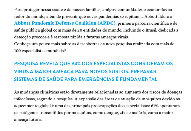 *Fonte: Abbott-Pandemic-Defense-Coalition-2024-Survey-Report.pdf Todas as marcas comerciais mencionadas são marcas comerciais do grupo de empresas Abbott ou de seus respectivos proprietários. Imagens apenas para fins ilustrativos. ADD-152946-BRA-PTBR |