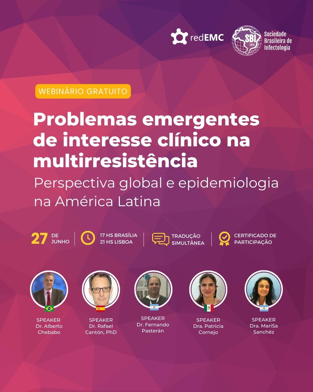 Temática: "Problemas emergentes de interesse clínico na multirresistência. Perspectiva global e epidemiologia na América Latina".