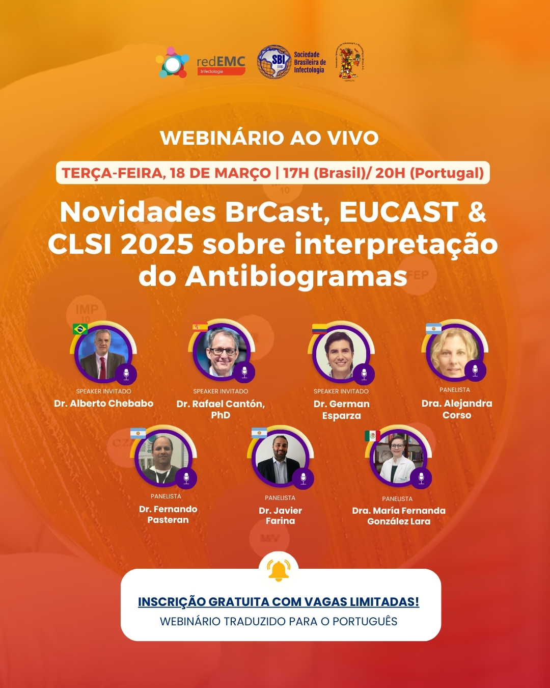 • Epidemiologia e testes de sensibilidade para a detecção de Enterobacterales produtores de BLEE e AmpC. Dr. Luis Martínez-Martínez (Espanha)